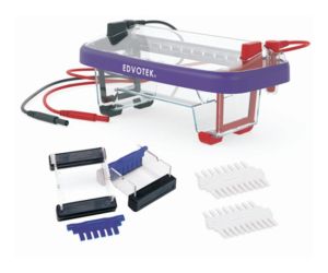 The latest in versatile electrophoresis design! Our newly reimagined M12 Complete™ Electrophoresis Package supports up to two groups of students in two standard length gel trays for experiments that require less separation, or one long gel tray for experiments that require more. Produces excellent results in 30-40 minutes and includes a lifetime warranty.